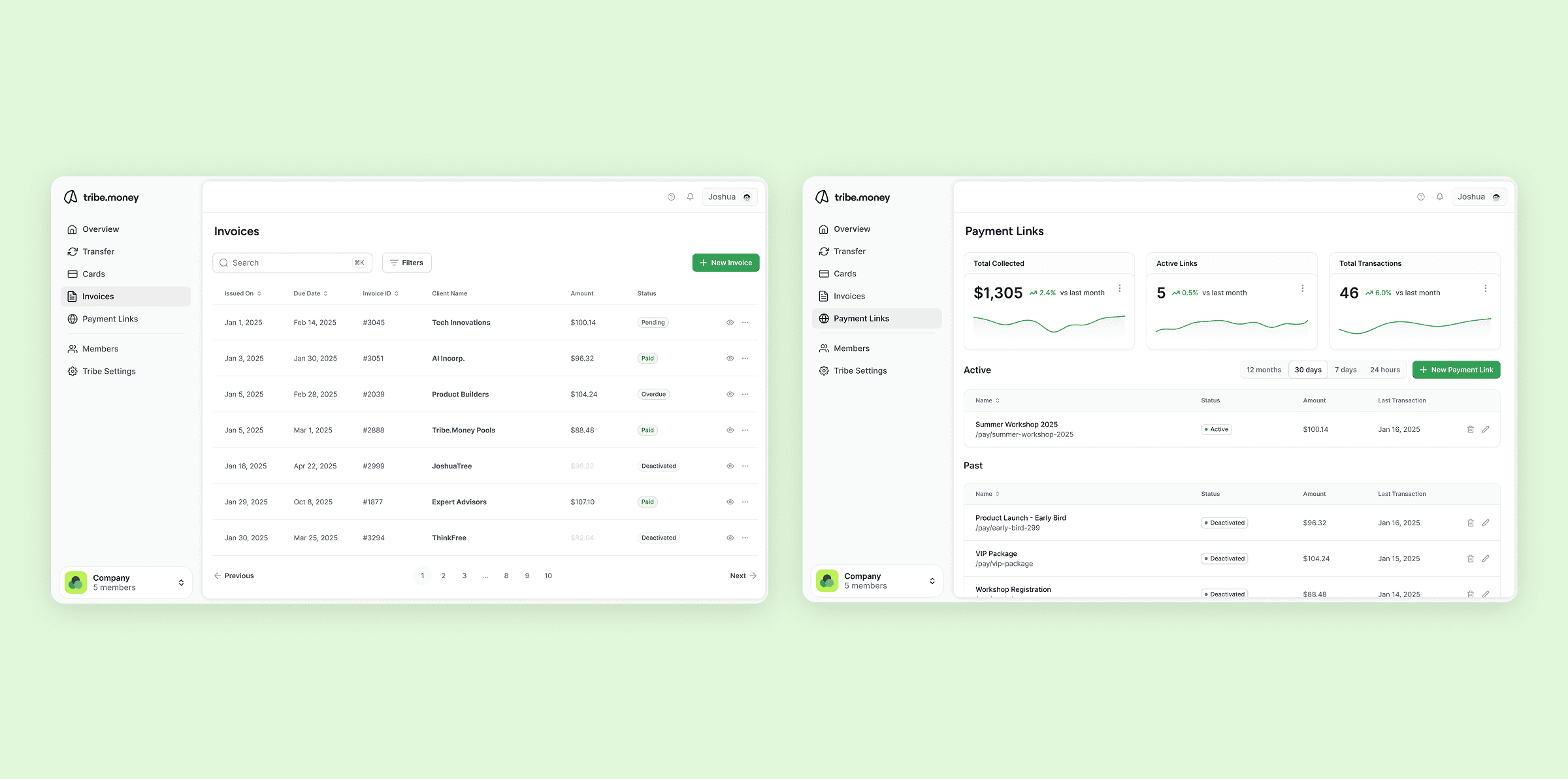 The platform accommodates both quick, open-ended requests and structured, client-specific transactions, depending on context. This led to the creation of payment links for the former, and invoices for the latter.